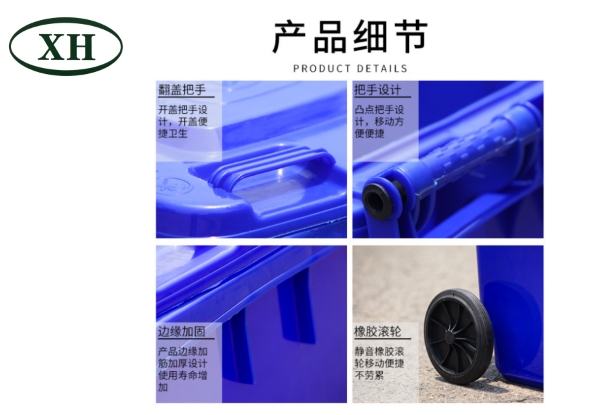 5、塑料垃圾桶的性能非常的穩(wěn)定,可以在酸堿環(huán)境下使用,且在太陽下暴曬也不用擔心,紫外線穩(wěn)定性非常的好。